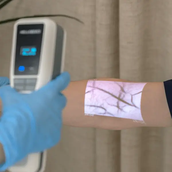 Like AccuVein ®, uses near-infrared (NIR) light for finding veins efficiently.