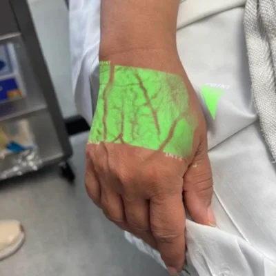The first stick It’s fantastic! It shows the veins on the back of my hand perfectly clearly, which makes the IV injection much easier.